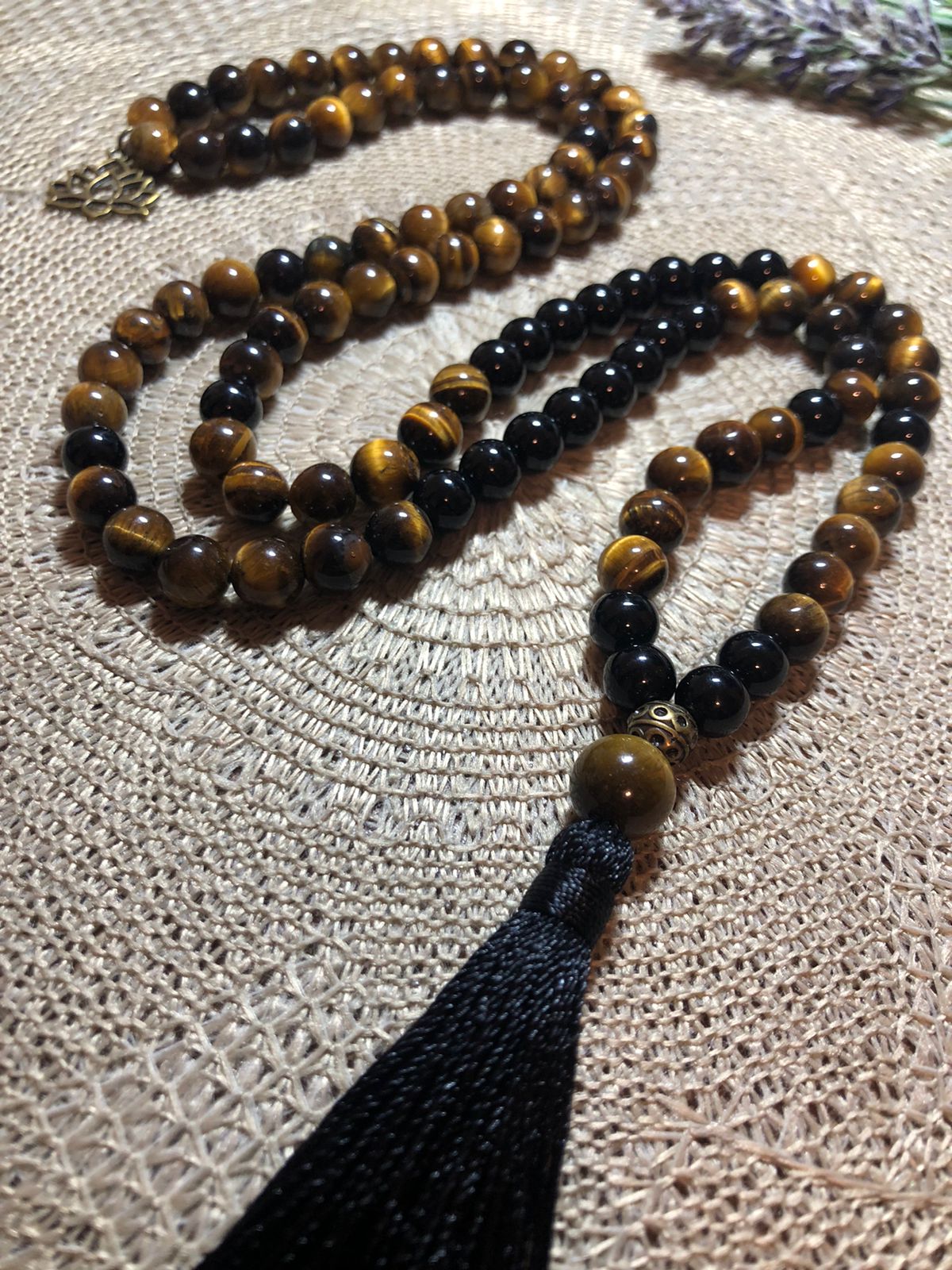 Japamala 108 Contas Olho de Tigre e Ônix Negra
