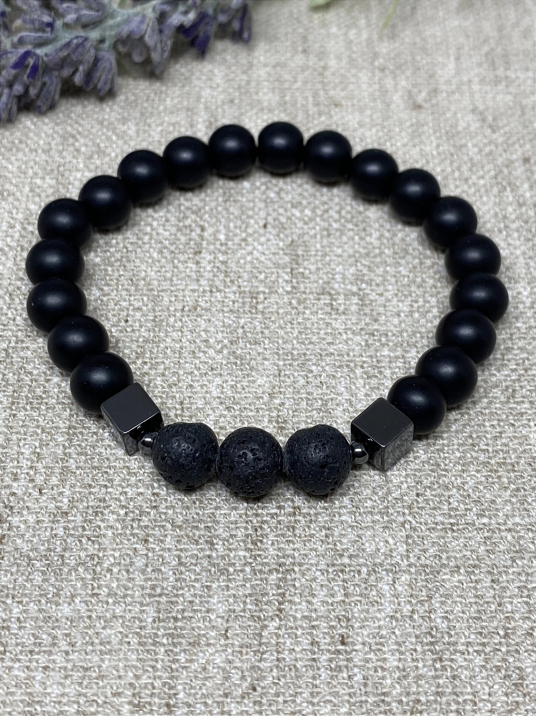 Ficha Técnica: Pulseira Pedras Ônix, Vulcânica e Hematita